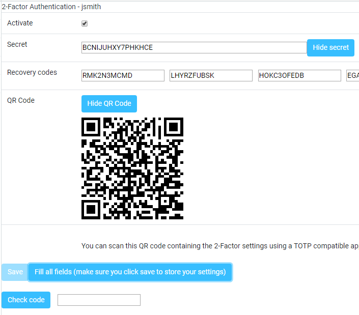 When the form is filled in, a QR code will be displayed. To read the QR code, you should install Google Authenticator on your phone: