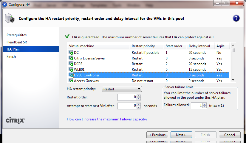 Keep altering the settings until it is reported that HA is guaranteed for the number of server failures you have set. Click Next > to continue