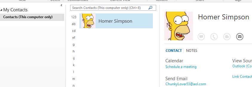 N.B. Outlook is unable to display images for contacts whose images are URLs. For example, the test contact created in Thunderbird is viewable correctly in everything except for Outlook. In the screenshot above the contact has been edited to have a image attached directly.