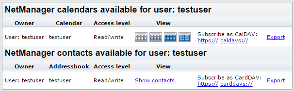 - Similarly, click on Show contacts to view the entries in an addressbook: