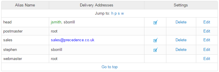 - Show system aliases - allow inbuilt aliases such as postmaster and root to be displayed and edited. Usually these are hidden for neatness